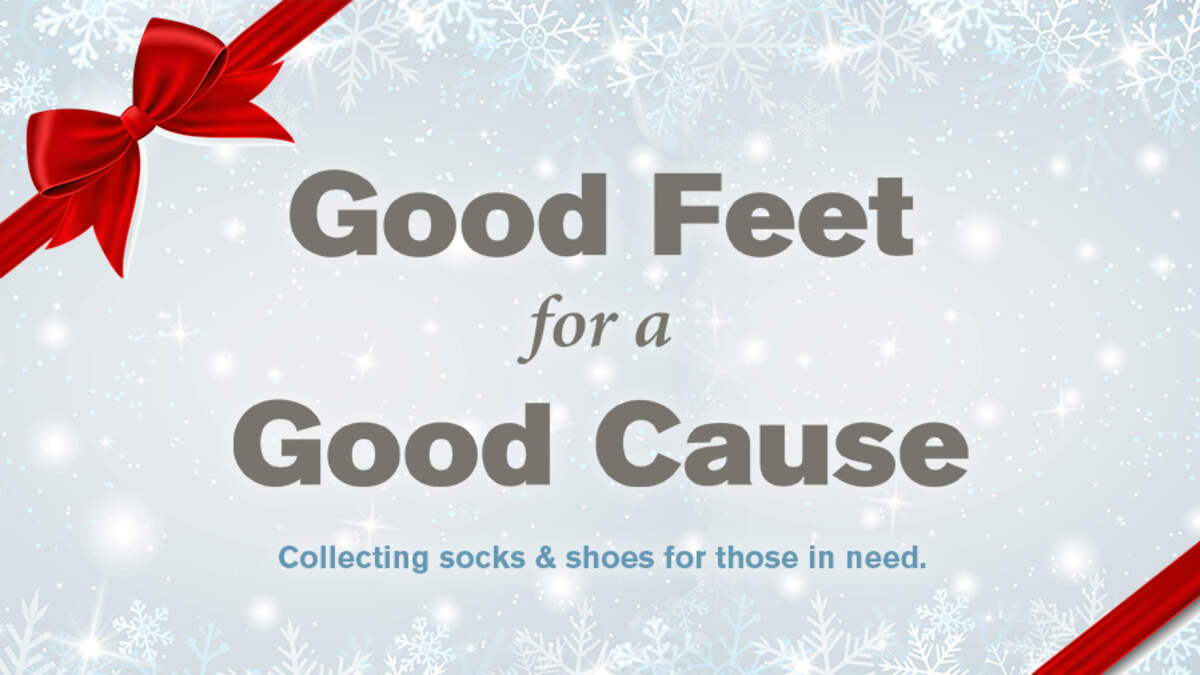 Let’s spread a little holiday cheer! The Good Feet Store is helping local people in need with its annual Good Feet for a Good Cause donation program. You’re invited to donate new socks and new or gently used shoes at The Good Feet Store now through the end of the year. Learn more at 1-800-NEW-FEET or MyGoodFeet.com