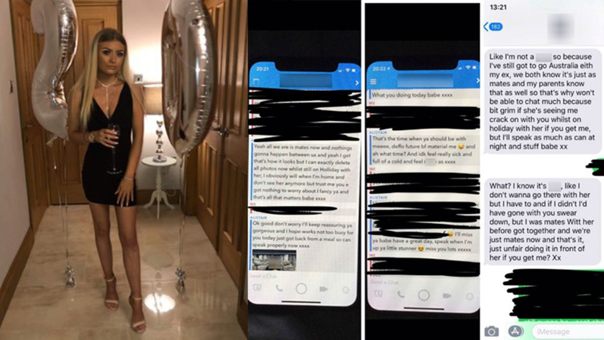 She tweeted out the pics with the caption, "Imagine going on holiday to Australia for a month with your boyfriend of nearly three years only to find out the day you get back that he slept with someone else the night before you went and was messaging her on his ‘2nd snapchat’ the whole time you were there lying next to him."