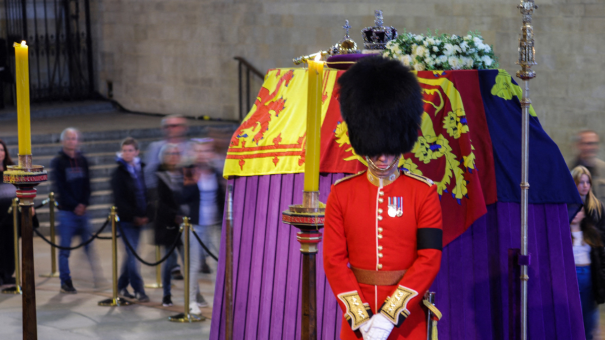 The man allegedly stepped out of line, climbed the steps to touch and pull the flag draped over the casket, according to TMZ and People. As seen on a live feed of the Queen lying-in-state, British police tackled and arrested the man. The live stream was paused for about 15 minutes after the incident.